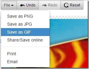 FreeOnlinePhotoEditor supportsvarious image formats: jpg, gif, and png; both for input and output.