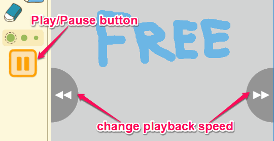 When you’re all set with the drawings and slides, you can simply click on the “Play/Pause” button on the toolbar to play the slides as animation. After the animation starts playing, you can use the “Arrows” on the left and right to change the playback speed of the animation.