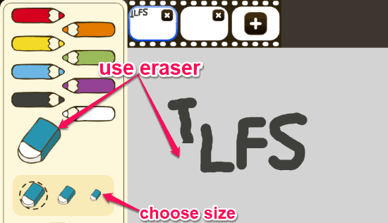 While drawing on the canvas, if you make some mistake then you can use the eraser to remove the drawing and start again. The eraser also comes with three different sizes which you can choose before making corrections on the canvas.