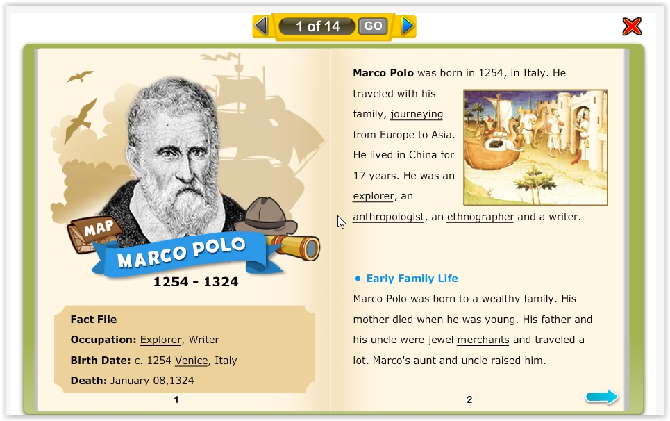 Another online platform for free biographies for kids is Turtle diary. It has got a perfectly themed interface, and biographies of perfect people for kids to read. These are not only famous people who kids love to read about, but, in some cases, they can also relate to their lives and feel that personal connection. These biographies are in different categories, and you only have to pick one of your choice. The biographies are presented artistically in the form of a book, with multiple pages you have to turn over. It begins with a basic introduction of the figure you are reading about, and moves on to their achievements & other important stuff. You can read them online, share them online for your friends to read, and also give your feedback to the website. You will have to give your email address if you wish to share the biography online. Check out the link above.