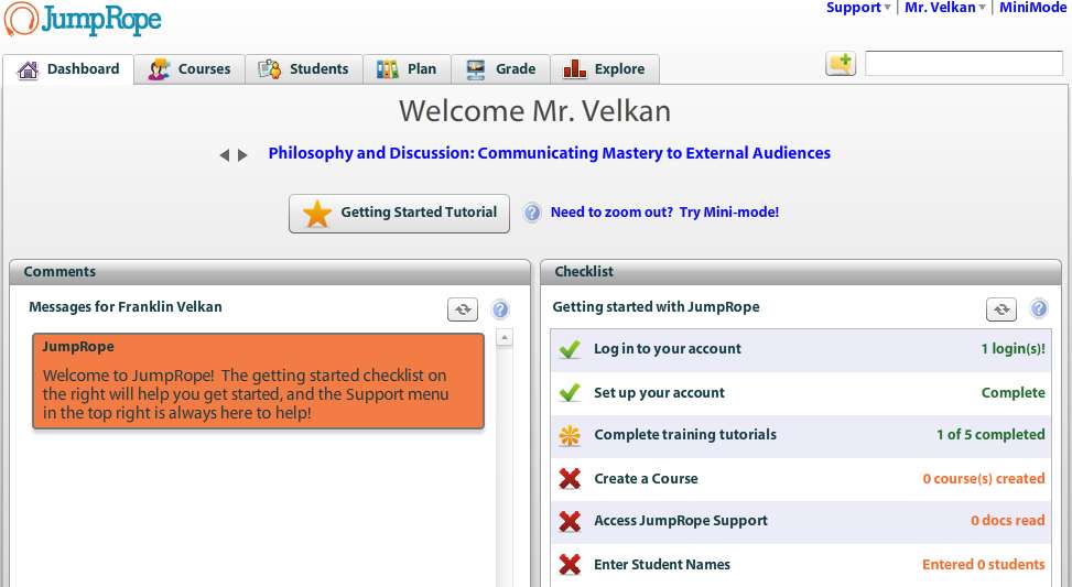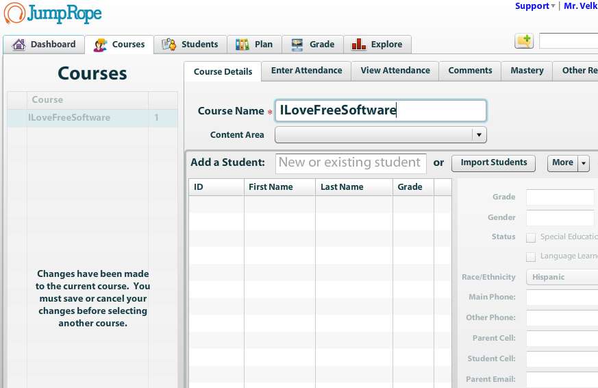 JumpRope is a free online student management service where teachers can keep track of their students progress, create lectures, and quick checklists of what they need to do. With the help of JumpRope you can create courses, plans, students lists, keep track of grades, and much more. This is free online service intended for teachers who would like to change their approach to education a bit.