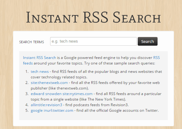 Instant RSS Search is a free RSS search engine with Instant Search. It means that the search engine will start showing the results to you in real-time as you will type the search query. The Instant RSS Search is powered by Google to make searching an easy and quick task.