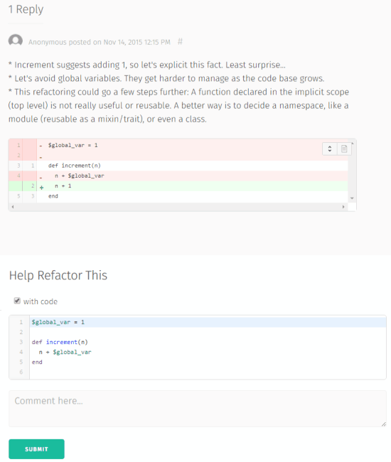 How To Share Code for Code Reviewing and Refraction using This Website?
