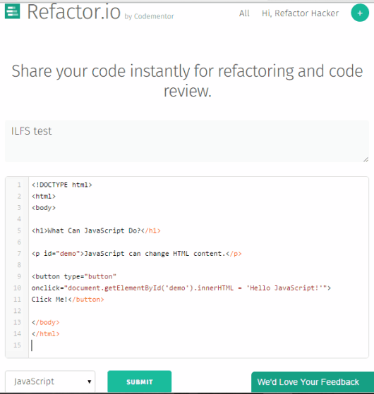Refactor.io is quite handy to solve the errors while running a program by submitting the codes and getting the suggestions by other users. There’s no harm using this website, but you should be careful before submitting the code if it is related to your top-secret program.