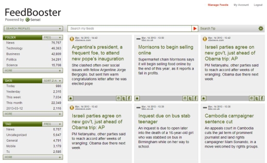 Last in the list is FeedBooster, another free Google Reader web-alternative that provides a customizable dashboard to let you search and browse through a huge amount of news feeds from your favorite sites and web blogs. It implements a multi-dimensional search technology and filtering options to let you easily find the news you want to read. It automatically updates your subscribed websites in real-time and lets you read the latest news feeds as soon as they get published.
