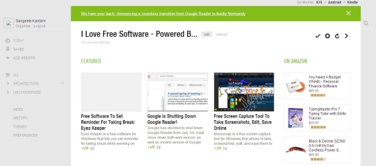 Feedly is one of the most popular web service that lets you read, organize, and share content from your favorite websites. It’s available both as a web app and downloadable app for iOS and Android platforms and provide efficient ways for Google Reader users to keep intact with their RSS Feeds.