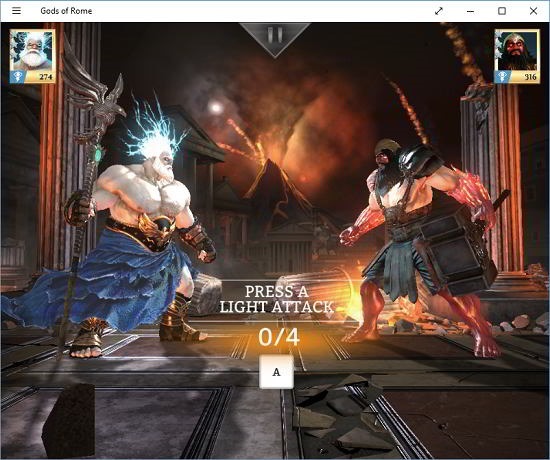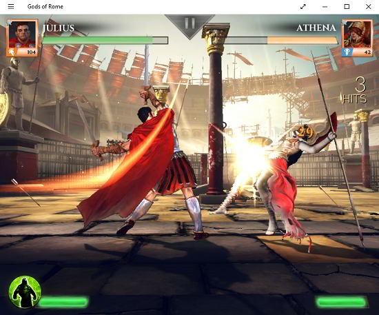 Gods Of Rome for Windows 10 is a free battle game app for Windows 10 devices. The game has been designed by Gameloft studios and has some really killer graphics onboard. The game when launched shows you the brief storyline of the game, followed by cut scene videos which have been designed in a very cinematically awesome way. The game is pretty heavy and you might think that passing on it is the right thing to do, but let me tell you that it is totally worth the large download size if you are a fan of one on one combat games set in the style of Tekken.