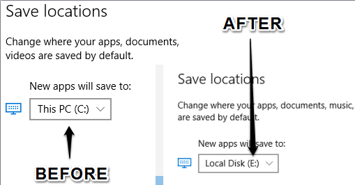 Below you can see save location of new apps changed from C to E by me in my Windows 10 PC.