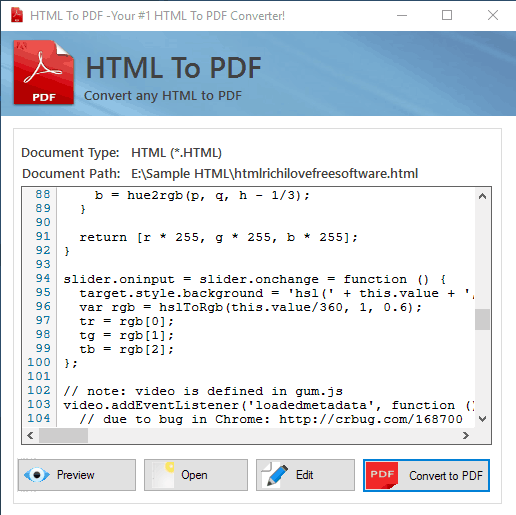 It is one of the best HTML To PDF converter software for Windows 10 in this list. Although it can convert only one HTML file to PDF at a time, but there are other features that make it stand apart from the crowd. This software lets you preview HTML file on its interface as well as edit file content using a separate window. Thus, before generating the output, you can add necessary changes and then convert HTML to PDF.