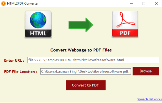 HTML2PDF Converter is the simplest software in this list. It supports local HTML files for conversion. You need to copy the HTML file path and paste it on its interface. After that, you can set the output folder for saving the PDF file. I also tried to convert a webpage (by entering webpage URL) to PDF, but it failed to convert it. So, this software probably converts local HTML files only.