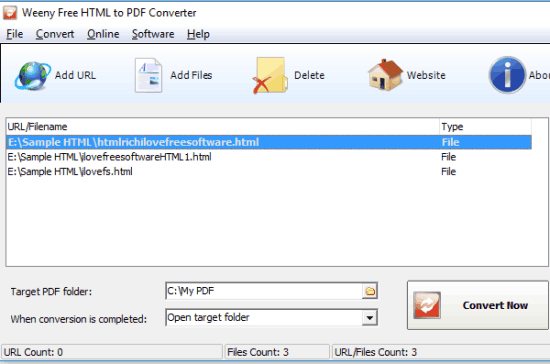 I like Weeny Free HTML to PDF Converter software a lot because of its simplicity and bulk conversion feature. You can bulk convert HTML files to PDF documents. Apart from that, you can also use this software as webpage to PDF converter software.