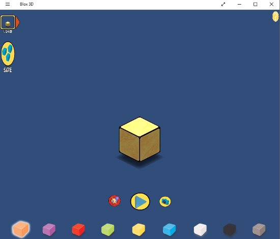 The Windows 10 3D block building game for kids can be downloaded from the Windows 10 store or you can also download it from the link given at the end of this article. When you start this app you will come across an interface like the one shown in the screenshot below.