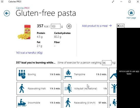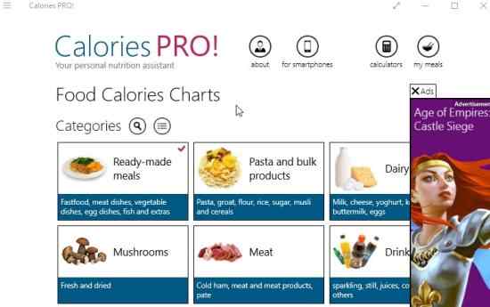 Calories Pro is a free Windows 10 calorie counter app which shows you exactly how much calories the food you are eating has. The app has a lot of products divided into various categories and finding calories for any of them is pretty easy. Each product in this app contains a image of the product, information about calories and in how much quantity.