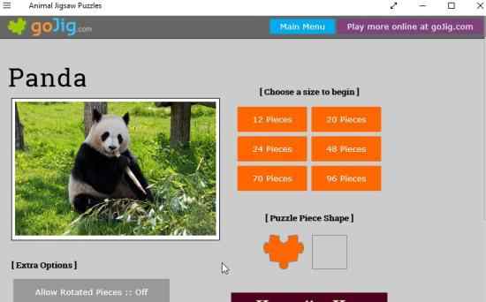 Animal Jigsaw Puzzles is a free Windows 10 jigsaw puzzle app with beautiful animal images to be made out of puzzle pieces. The app lets you choose the number of pieces you want to have in each puzzle that you play. Jigsaw puzzles are fun but customized jigsaw puzzles are much better.