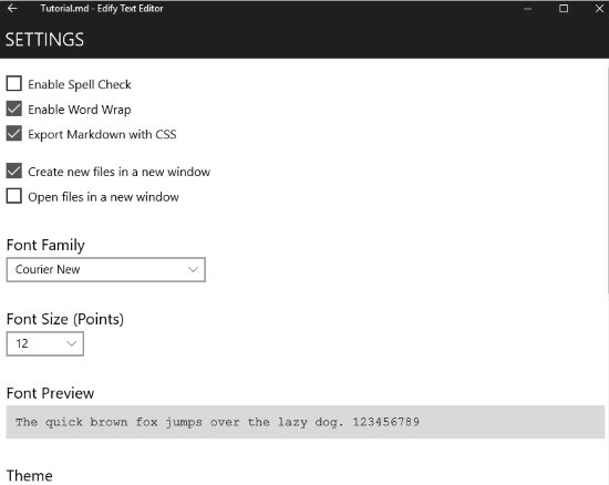 Edify Text Editor is a nice text editor for Windows 10 which can be used as a replacement for notepad. The app interface is neat and minimal and makes for an excellent distraction free writing environment. Lot of settings which you can change according to your choice and theme of the app can be changed as well.