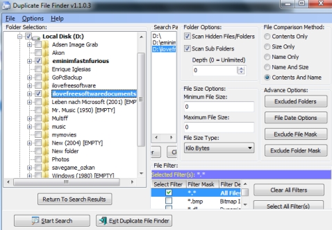 Duplicate File Finder is an advanced utility to find duplicate files and is very effective also. Just few settings are needed to configure the tool to easily find and delete duplicate items. You can use this freeware to free up some disk space by removing unwanted items.