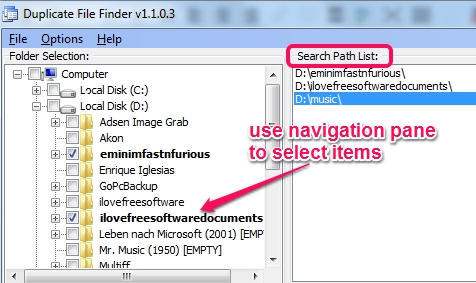 At left side on its interface, navigation pane is available. Using the navigation pane, you can easily select multiple folders or a whole hard drive, from which you want to fetch duplicate files. Without using Windows explorer, you will be able to select items with this pane.