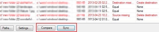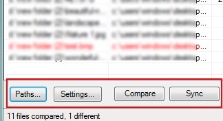 - Compare: This is an easy option to use. Clicking on Compare button will let you compare source and destination folders. Comparison is done very quickly and after comparing files, it will show you files that are different (highlighting in red color). See the below screenshot.