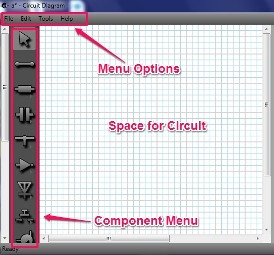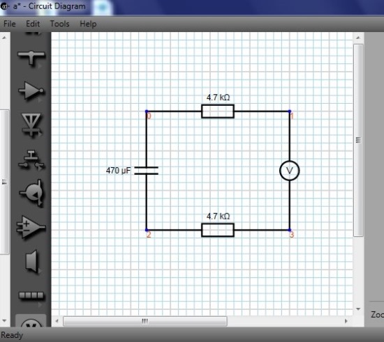 The user interface is really simple and you have a nice menu on your left from where you can pick and place your electronic components. You can drag the components on the circuit to draw the diagram and can select their values and type, just by right clicking on the component. You can select to view the grid lines which are a great help for accurately placing the components.