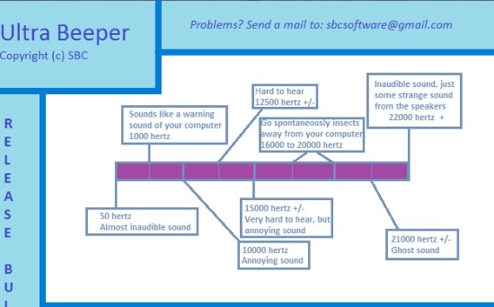 Ultra Beeper is free software to make annoying sounds. The sounds can be played from predefined frequencies or the sound can be created in range from 50 Hertz To 32000 Hertz of frequency. The sound you get are basically beeps of different frequencies.