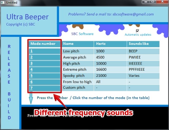 Ultra Beeper is very simple to use. The user interface has simple options to play predefined sounds of different frequencies. In order to create annoying sounds and beeps you can select either of the frequencies using mouse or using keyboard numbers from the user interface.