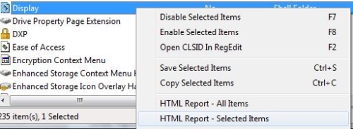 You can save a selected extension and export it to an HTML or a text file. You can right click on an item you want to save and choose “HTML Report” to save it to an HTML file. To save it to a text file, you can press “Ctrl+S” or choose the “Save Selected Item” to save the item to a text file.