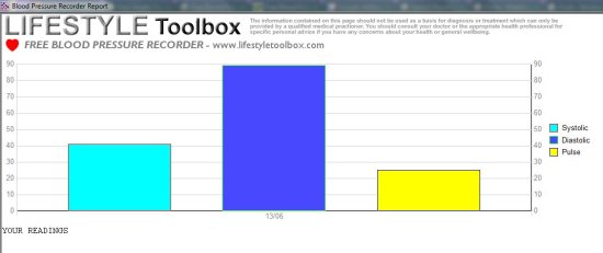 For using Blood Pressure Recorder, firstly you need to select the day on which you took your readings for Systolic blood pressure, Diastolic blood pressure, and pulse rate. Now, you need to enter these readings in their specific boxes on the interface of this software. You can even add a short comment about the activities you have done through out the day. Finally when you are over with this, click on “View Report” button. Readings entered by you will be recorded and shown in the form of graphs which can be even printed later on.