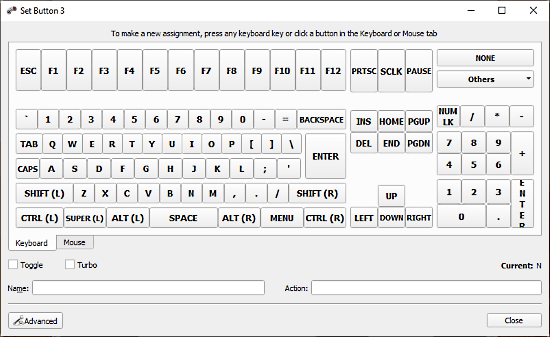 Mapping east of the keys is comparatively simple and quick. All you have to do is tap the control button from the program and it shows you a keyboard layout. Then, tap the keyboard button from the layout for mapping. You can also, toggle a mouse actions layout and map those actions.
