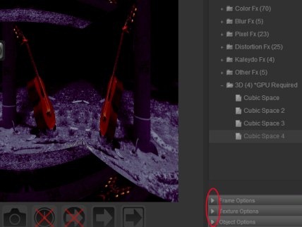 The available control panel in FabCam gives you all the options: Fx Panel, Frame Options, Texture Options, Object Options, and Text Options. This Control Panel button will be available at the top middle part of FabCam’s interface. Click this button, and you will find all the options at the right side under control panel. As you could see in the below given screenshot, all the options which you can access.