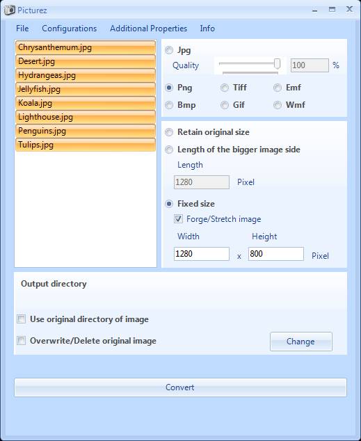 When you’re done setting everything up, set the output directory by clicking on Change and then click on Convert. Open up the selected target folder and your images should be there.