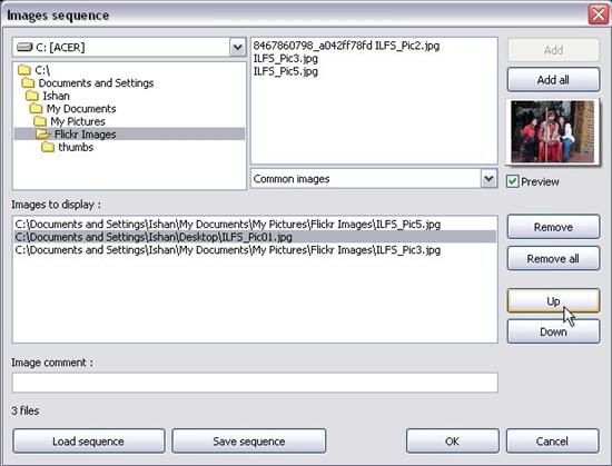 You would have to choose a picture from the folder, to open it in Visioimg, and then explicitly play the slideshow using the Start Slideshow button present on the toolbar. Rest of the playback controls let you stop, and go to the first, last, next, or previous image in the sequence. The slideshow will begin from the image that you open. To change the sequence, you can open the Sequence Manager (seventh icon from the right) from the toolbar and rearrange images accordingly.