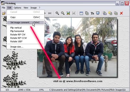 Visioimg also lets you add a custom comment to the photos. This would be shown below the images while watching the photo slideshow.