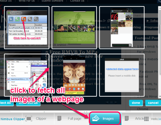If you have to grab all the images of a webpage, this feature is valuable. It will try to fetch all images from a webpage (even Google Images search results) for storing to your Nimbus account. However, in my testing, all images were not fetched successfully. But I was able to select multiple images for storing.