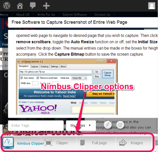Nimbus Clipper is a very useful Chrome extension to save webpages, webpage images, as well as articles available in different webpages. All content will be saved to your Nimbus account. Special feature of this extension is that it lets you edit webpage content before saving it to your account. Editing lets you remove ads, unwanted images, text content, etc. which is very beneficial. Moreover, you can even add own text, and highlight a particular text.