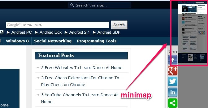 The software does not contain any options menu or something. You just have to add it to your bowser and view the minimap. Once you add and open a new page, you will see the map of that page on the right side. This position cannot be changed by you. You can scroll up and down on the minimap and directly visit the area you want to visit. Scrollmap is also smart enough to not appear on pages where its not required. If a page is fully visible on your screen, Scrollmap will not show up.