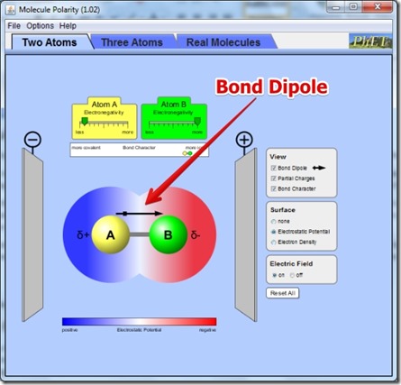 Molecule Polarity is simple to understand software for learning about Polarity of Molecules and Electronegativity. Its great software for anyone who wants to learn about the basis of molecules. I have tested it in Windows 7 and I did not have any trouble in checking out the behaviors of molecules for different polarities. If you are interested in learning about the molecules then I would recommend you to try it out.