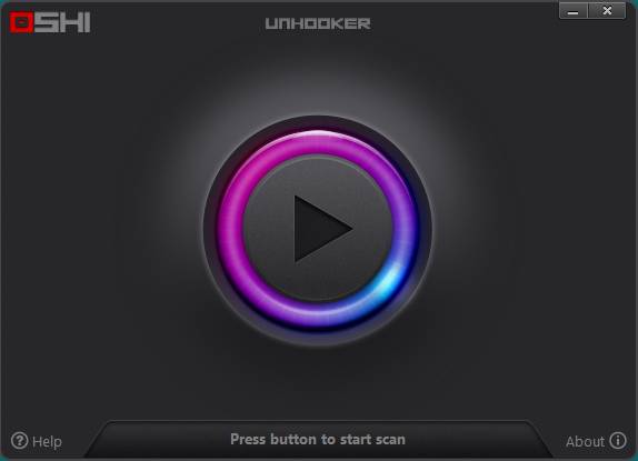 Well, like you can see in the image above, the only thing that you can do when you start Unhooker would be clicking on the giant play button which is present in the middle of the screen.