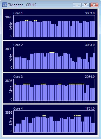 Most of the modern computer processors nowadays are coming with adaptive frequencies, which means that they can increase their speed when needed. TMonitor can help you keep track of these changes for the entire CPU as a whole, or for each individual core, if your CPU has several of them.