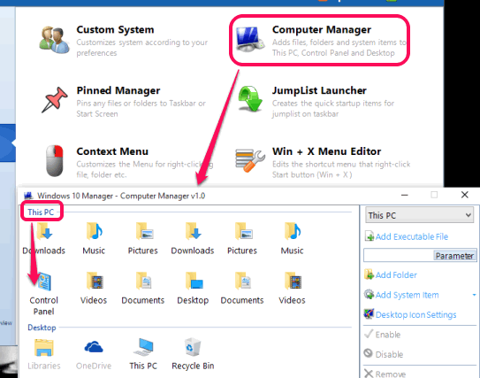 - Add a particular file/folder or system item (like Control Panel, Recycle Bin, etc.) to This PC or Desktop.