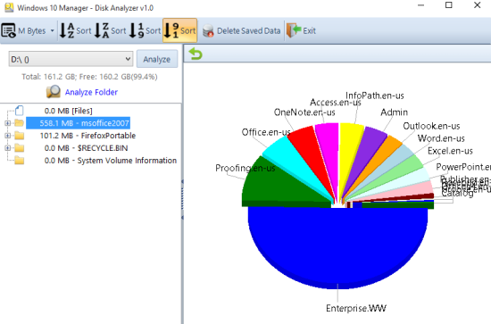 - Disk Analyzer: When you have to find large files and folders available in a particular hard drive, then this Disk Analyzer will come in handy. It shows a beautiful pie chart to check which files and folders occupy most of your hard disk space. The pie chart is plotted automatically for every single folder available in the selected hard drive.