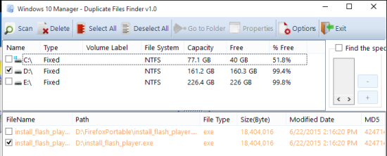 Before you start the scanning and cleaning process, you can also backup the whole registry to prevent any damage. - Duplicate Files Finder: As its name suggests, it helps to detect duplicate entries present in your hard drives and lets you remove those entries to gain disk space. You can select all drives or a particular drive to scan the duplicate items and clean them