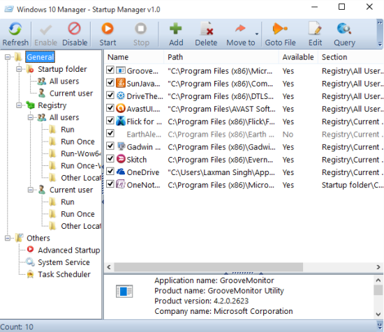 - Startup Manager: It’s a great tool to check the list of all those applications or programs which start automatically along with your Windows 10 OS. There might be some applications which are in the list without your knowledge and increasing the Windows startup time. You can find those applications and delete them from startup list. If you don’t want to remove some applications for some reason, you can at least disable them.
