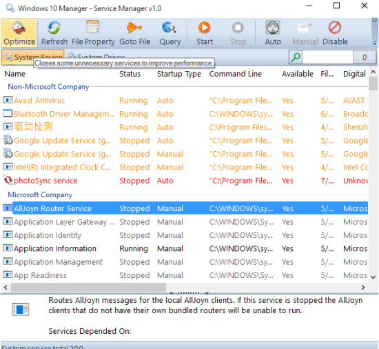 - Service Manager: Using this tool, you can see the list of all system drivers as well as services (running and stopped). The list also provides details for every single service and driver. For example, you can check the startup type of service, digital signature (if a service is trusted or not), availability, etc. Any service and driver can be terminated by you. However, you should not disable any service, until you are sure enough.