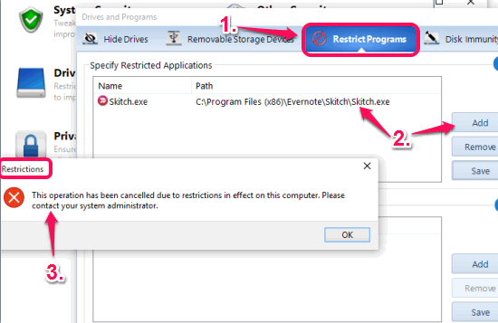 Moreover, you can also set ReadOnly permission for desired folders and files. No one can modify the data available under a file or folder after applying the ReadOnly permission. So, this tool is a great solution to protect your important data. - Protect Drives and Programs: This is really a great tool to control and protect your installed programs and hard drives. You can make any hard drive invisible or restrict access to that drive using this tool. Apart from this, you can disable access to any installed application so that no one can use that application.