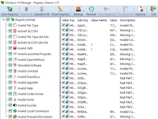 - Registry Cleaner: It scans the whole registry for various entries, like invalid file type, shareDLLs, fonts, ActiveX & COM, obsolete software, sounds, Firewall information, etc. After scanning process, you can clean your Windows registry in a single-click.