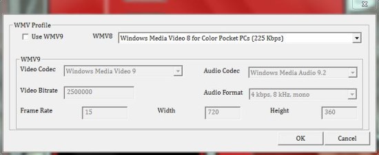 - Options to edit WMV output file settings including video codecs, video bitrate, frame rate, audio codec, audio format, etc.