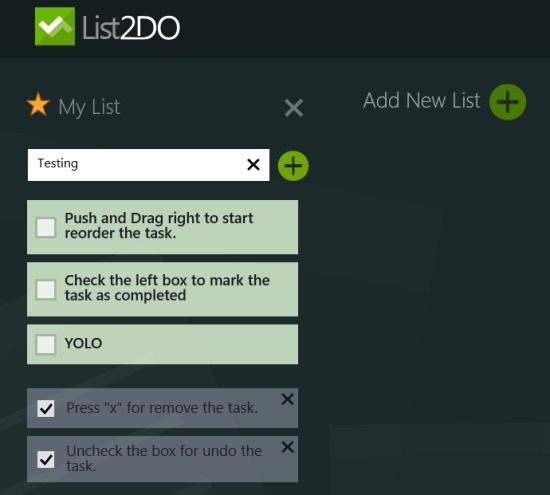 To Do apps are one of the most commonly used and useful apps on any platform. List2Do is a free To Do App for Windows 8 that has two main features: beautiful interface and a minimalistic approach. This app does not offer you fancy features like Task By Telerik or Google Tasks sync support like gTask HD. The app offers the user a quick way to manage tasks with its simple interface. The app can be described as elegant, quick, and minimalist To Do app for Windows 8. There are other apps available that provide better function but if you prefer simplicity then you will just love this To Do app for Windows 8. So download List2Do and organize your thoughts, tasks, and take advantage of your precious time. ![]()