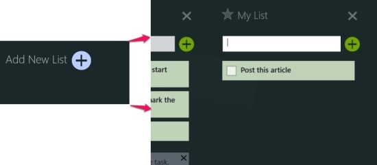 To add a new list inside this app just click on the Add new list option as pointed out in the screenshot below. And the new list will appear below the button. To rename the list just click on the list name and you will be able to edit the list according to your needs. To add an item to this newly created list just follow the above steps stated in the above paragraph.![]()