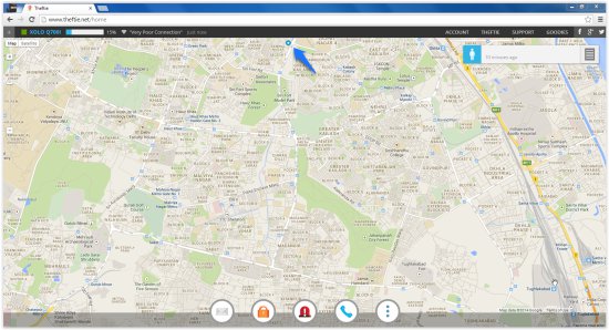 Simply navigate to Theftie’s website on a web browser of your choice and sign in with the same Google account as you did on the Android device, and you will have the map showing location of the device. It also gives you access to all the other options from an interface, as seen below.