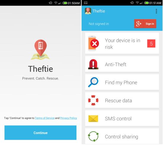 Theftie for Android also helps you rescue the data by backing up data and prevent unauthorized access by wiping your phone.